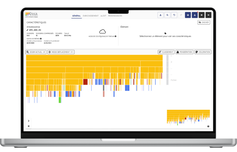 Générer des rapports détaillés sur la structure et la composition des dossiers, avec statistiques et recommandations à partagez à vos équipes. Exportez vos analyses en .csv pour aller plus loin dans vos recherches.